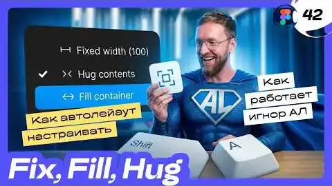 [42] 🔥 Автолейаут в Фигме (2025). Fill, Fix, Hug как настраивать? Игнор АЛ. Фигма с нуля